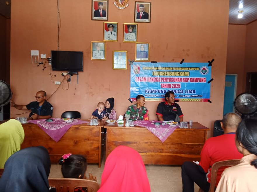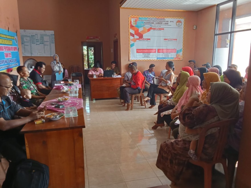 Turut hadir dalam musyawarah, Kepala kampung sungai luar, BPK, Banbinsa, perangkat desa, Ketua TP-PKK,Kader Posyandu, Kader Pembangunan Manusia (KPM), Tokoh Masyarakat, Ketua RT/RW dan Pendamping Desa.